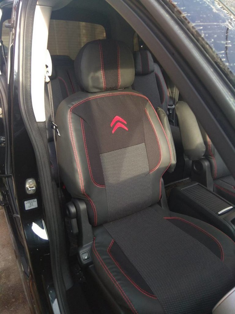 Авточохли (тканина↗кожзам, Premium) Повний салон для Citroen Berlingo 2008-2018 років.