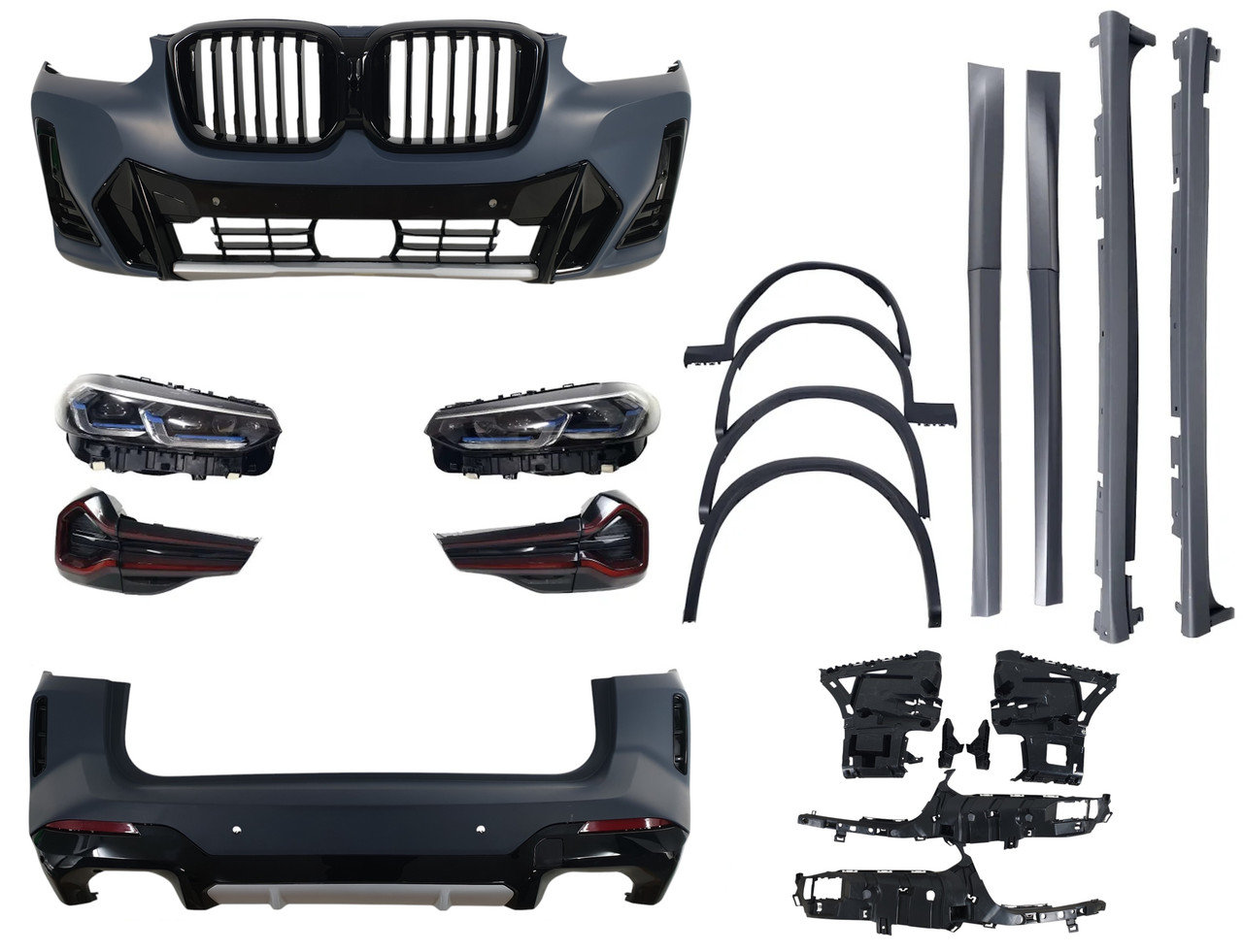 Цей комплект додасть вашому BMW X3 G01 індивідуальності та шарму, підкресливши його спортивний характер. Встановлення легке та швидке, не потребує додаткових модифікацій. Підкресліть свій стиль та станьте унікальними разом з комплектом рестайлінгу від Restal!