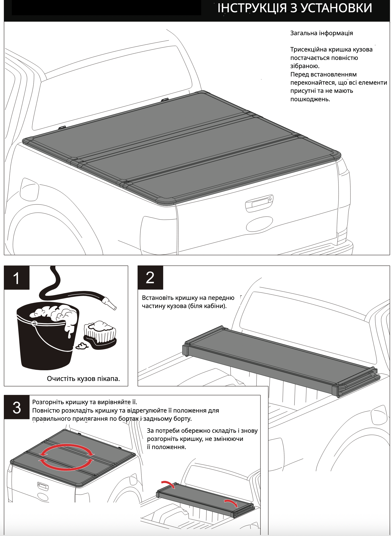 Тип: трисекційна складана кришка кузова (Tri-Fold, tonneau cover)